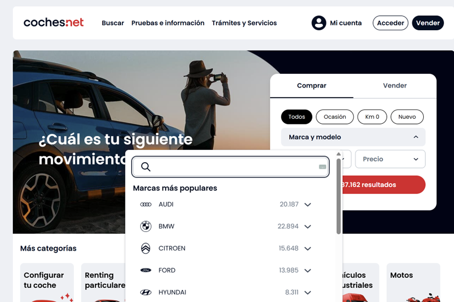 Una vez hayas encontrado el modelo que te gusta accede a una plataforma de venta de coches reconocidas.